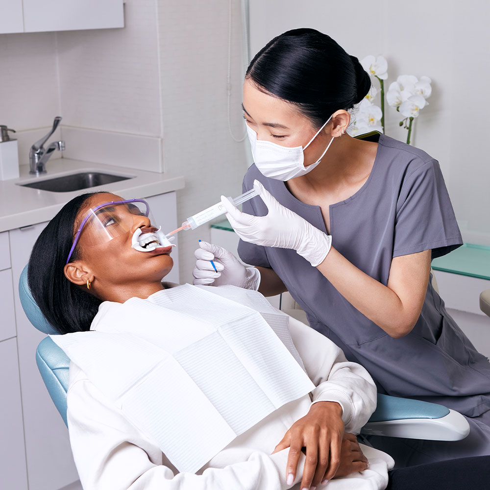 In-office teeth whitening is performed by a dental professional using high-strength whitening agents that are not available for home use. This treatment delivers fast, noticeable results—often in just one visit—while ensuring the teeth and gums are properly protected. Because it is professionally supervised, the procedure is customized to your needs and helps minimize sensitivity while achieving brighter, longer-lasting results.